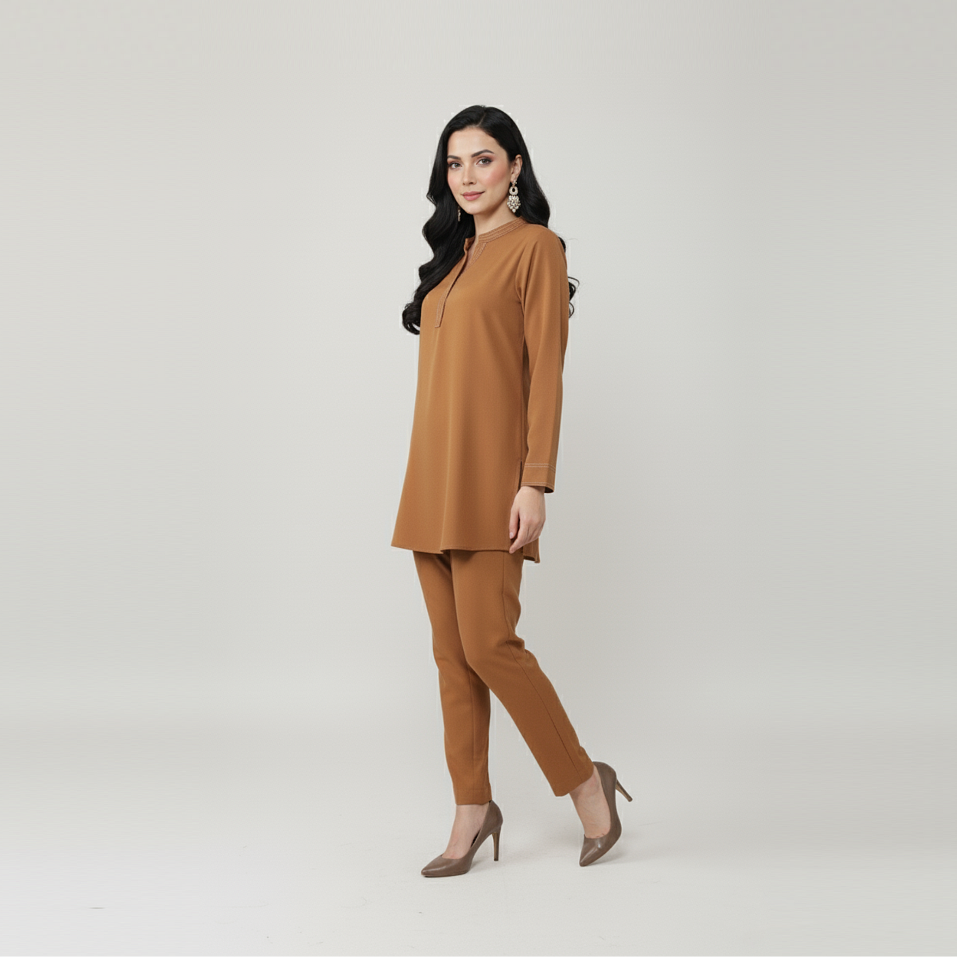 Elevate your daily and office wardrobe with this mustard-colored co'ord set featuring premium stitching that ensures durability and refined style. Designed for both comfort and sophistication, this set offers a versatile look that seamlessly transitions from work to casual settings. Ideal for those who appreciate quality craftsmanship in everyday wear.
